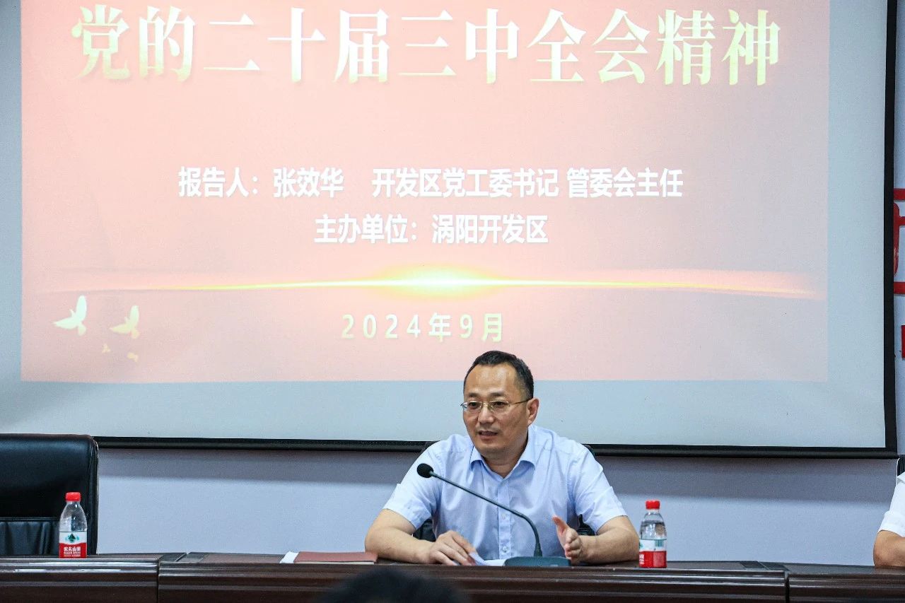 9月6日,渦陽縣開發區黨工委書記、管委會主任張效華來廠宣講黨的二十屆三中全會精神,推動