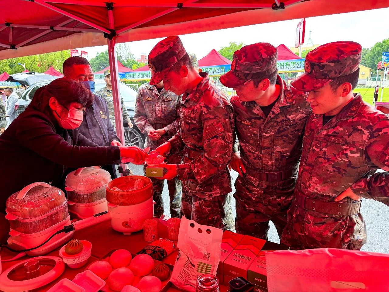 正宇集團展臺前人頭攢動,人民子弟兵們紛紛前來參觀正宇集團獨具特色的富硒面粉、本草醋、非油炸方便食品等產品。同時在品鑒了現場蒸制的包點、餃子之后贊不絕口,對產品的品質、口味等給予了極高的評價。