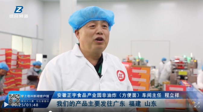 近日, 亳州電視臺《亳州新聞聯播》欄目頭條報道——新春新開局,渦陽:開足馬力沖刺首季“開門紅”!欄目對安徽正宇集團食品產業園進行報道。